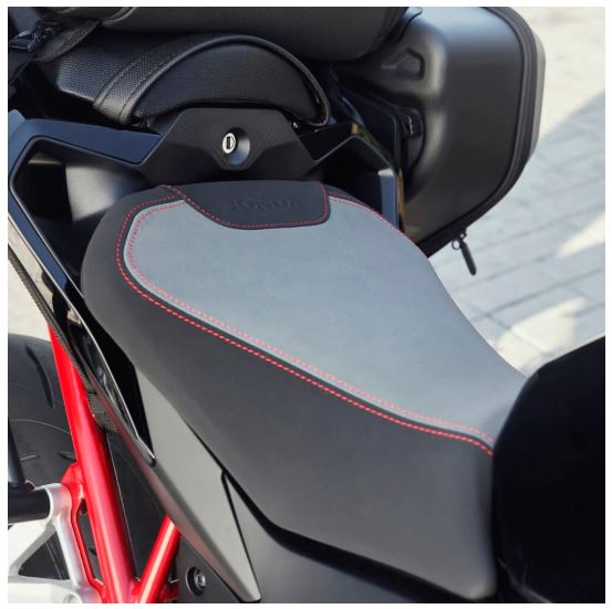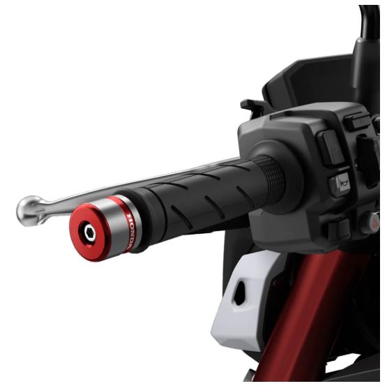 The Style pack for CB750 Hornet is designed to enhance both the aesthetics and functionality of your bike. This pack contains the following accessories: Rider Steps, Grip ends, Aluminiumm handlebar holder, Headlight stripe, Wheel stripe (Red) & Main Seat