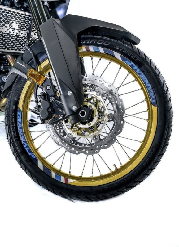 These colour-matching wheel stripes featuring the Transalp logo, add a sporty design element to the wheel rims. The kit includes 8 stripes to fit both wheels. Designed to match the Ross White (Tricolor) bike.