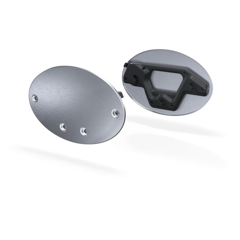 These brushed aluminium side number plates remind you of classic sports bikes and clean up the looks when your carrier bags are not mounted. To be fitted to the Soft Side Bag Stay
