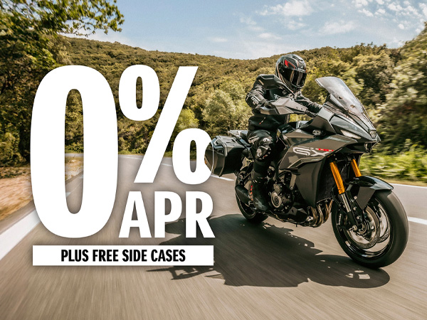 Suzuki’s 0% offering also extends to the GSX-S1000GT and the GSX-S1000, plus the Katana, which is powered by the same GSX-R-derived engine. To sweeten the deal further, both the GX and GT also come with free 36-litre panniers, while buyers of the GSX-S1000 can boost the super-naked's performance and exhaust note with a free Akrapovic exhaust worth over £1100.