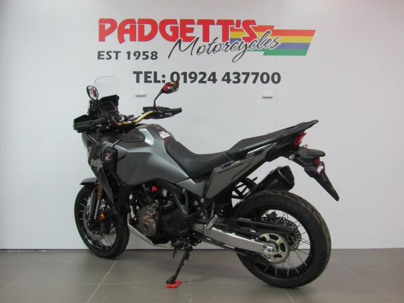 WE PRESENT HERE FOR SALE THIS HONDA CRF1100 ADVENTURE SPORT 2025.TAKE YOUR ADVENTURE ON TOUR. When you’re in the saddle all day, day after day, little things can be a big deal. In redesigning the Africa Twin Adventure Sports, we’ve focussed on comfort, because that big fuel tank will take you a long way. The expanded front fairing offers extended wind protection, while the height-adjustable screen reduces helmet buffeting. And to improve safety, the new dual LED headlights feature Daytime Running Lights (DRL) for consistent daytime visibility. They also incorporate Cornering Lights which – dependent on speed and lean angle – automatically illuminate corner blind spots. Heated grips warm hands while cruise control deals with large distances; there’s also an ACC charging socket. And tubeless tyres mean easy roadside repairs. FULLY LOADED FOR THE LONG-HAUL. Time to explore? There’s no better partner for your travels, wherever the road leads. We’ve readied the Africa Twin Adventure Sports with practical features to help you go long. Really long. And it’s also packed with technology in support of your journey. Like the Africa Twin it has four pre-set riding modes and two customisable user modes, dynamic Inertial Measurement Unit (IMU) control, HSTC, Cornering ABS and Wheelie Control all easily managed through the TFT touch screen, with Apple CarPlay® and Bluetooth connectivity also at your fingertips. Optional SHOWA EERA™ suspension. When you come to choose your new Africa Twin Adventure Sports – and because who knows where the open road’s going to lead – there’s the option of SHOWA ELECTRONICALLY EQUIPPED RIDE ADJUSTMENT (SHOWA EERA™) for optimum suspension settings all the time. Three pre-set modes cover all scenarios between touring, city and off-road riding. Rear spring preload can also be adjusted electronically while stationary to suit load, whether riding solo or with pillion and luggage. The Africa Twin Adventure Sports is the perfect package for the long haul. Engineered for comfort as well as performance the front fairing protects while the height-adjustable screen lets you tailor airflow. The 24.8L fuel tank gives greater autonomy, while the large engine skid-plate plate and premium aluminium panels protect the machine. When you’re loaded, with passenger and luggage, you need an engine that responds strongly to every input, especially for passing. So we’ve tuned an extra 5Kw/5Nm of peak power and torque into the parallel twin-cylinder powerplant and lifted performance throughout the rev-range. A new cylinder head, throttle body and ECU deliver precise throttle control. Optimum suspension settings, all the time. It’s not just a theory. Optional SHOWA EERA™ manages damping force relative to mode selection and a dedicated suspension ECU draws real-time information from front and rear stroke sensors, IMU and Cornering ABS. Rear spring preload can also be adjusted electronically while stationary to suit load. Engage with the journey. A full-colour 6.5-inch TFT touch-screen offers immersive selection of riding modes and easy control of navigation and Bluetooth smartphone/audio connectivity. Apple CarPlay® allows seamless mirroring and management of iPhone apps or calls via the touch screen. The new dual LED headlight delivers a penetrating beam and also features dual Daytime Running Lights (DRL) that automatically adjust to ambient light intensity and give a bright, highly visible light improving safety. Additional Cornering Lights use speed and lean angle to automatically illuminate blind spots when cornering in the dark. The bike is available for viewing and is well worth a look. Finance is available and is subject to status. Nationwide delivery can be arranged from as little as £60. Usual Dealer facilities including a Large range of clothing, helmets & accessories. Call Padgett’s Motorcycles today to ensure that you don’t miss out, 01924 478491 or 01924 437700.