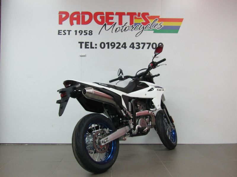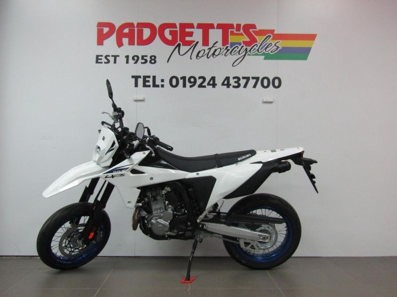 We present here for sale this Suzuki 2025 NEW DR-Z4SM. YOUR WORLD. YOUR PLAYGROUND. With a punchy, new engine, agile chassis, and state-of-the-art electronics, built for precision and endless fun, the all-new DR-Z4SM lets you conquer the streets and the circuit, and turns your world into your playground. SUPERMOTO PERFORMANCE. The compact 398cc, liquid-cooled, DOHC engine that powered the original DR-Z400 became known for its performance, but also its robustness and reliability. One feature that helped enable it to develop this reputation was its dry sump lubrication system, which helped give greater levels of ground clearance. Suzuki has redesigned the engine for 2025, ensuring it hits all of its required legislation targets without sacrificing reliability and performance, making sure it produces an abundance of torque across its operating range and delivering a smooth, linear throttle response. The bike is available for viewing and is well worth a look. Finance is available and is subject to status. Part Exchanges welcome. Nationwide delivery can be arranged from as little as £75. Usual Dealer Facilities including a Large range of clothing, helmets & accessories. Call Padgett’s Motorcycles today to ensure that you don’t miss out; Suzuki Sales Centre 01924 609808, Honda Sales Centre 01924 437700 and Yamaha Sales Centre 01924 478491.