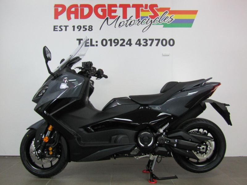 We present here for sale this Yamaha TMAX 560. New and un- registered. The iconic TMAX sport scooter is the most successful model in Europe – and has been number one every year for two decades. Now Yamaha is taking sports performance to the next level with the new larger-capacity TMAX 560. Quicker, sportier and more dynamic, the new generation TMAX will be your best move. New bodywork with integrated LED front flashers gives this iconic model a more aggressive look that commands total respect on the street. Improved ergonomics ensure easier access and increased comfort – and the pure sports DNA is evident in the slimmer rear end and super-cool T-shaped LED taillight. As soon as you twist the throttle you’ll feel the bigger engine’s increased power that delivers even quicker overtaking and faster acceleration. When you’re riding longer distances on the highway, this is one of the most comfortable and convenient ways to travel. And in town nothing else come close. At a glance it has the following features: More powerful 560cc EU5 compliant engine; New more dynamic and aggressive body design; Improved ground accessibility; Integrated LED front flashers; Lightweight aluminium frame – rigidity & balance; Traction Control System & D-MODE; Large storage space; Smart Key operation; Monotone TFT instrument panel; Motorcycle-type suspension and has My TMAX Connect. The bike will come with 12 months Tax, Datatag’ed, 24 months warranty, 12 Month Yamaha Assist Roadside Assistance, Owner’s Manual and Service Book. The bike is available for viewing and is well worth a look. Finance is available and is subject to status. Nationwide delivery can be arranged from as little as £60. Usual Dealer facilities including a Large range of clothing, helmets & accessories. Call Padgett’s Motorcycles today to ensure that you don’t miss out; Suzuki Sales Centre 01924 609808, Honda Sales Centre 01924 437700 and Yamaha Sales Centre 01924 478491. PLUS £180 OTR FEES